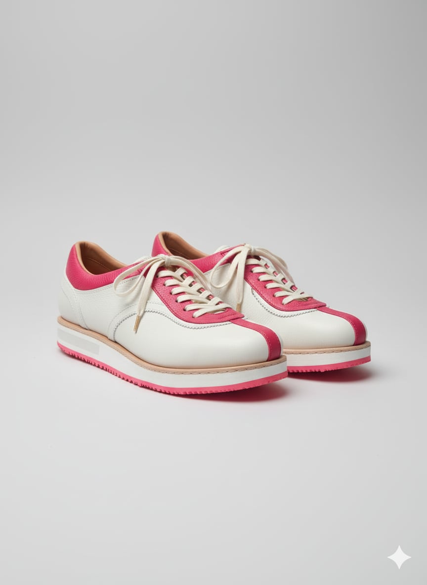 クラシックなランニングシューズの意匠を敢えて継承し、そこに伝統的な紳士靴の技術とをマッシュアップ。